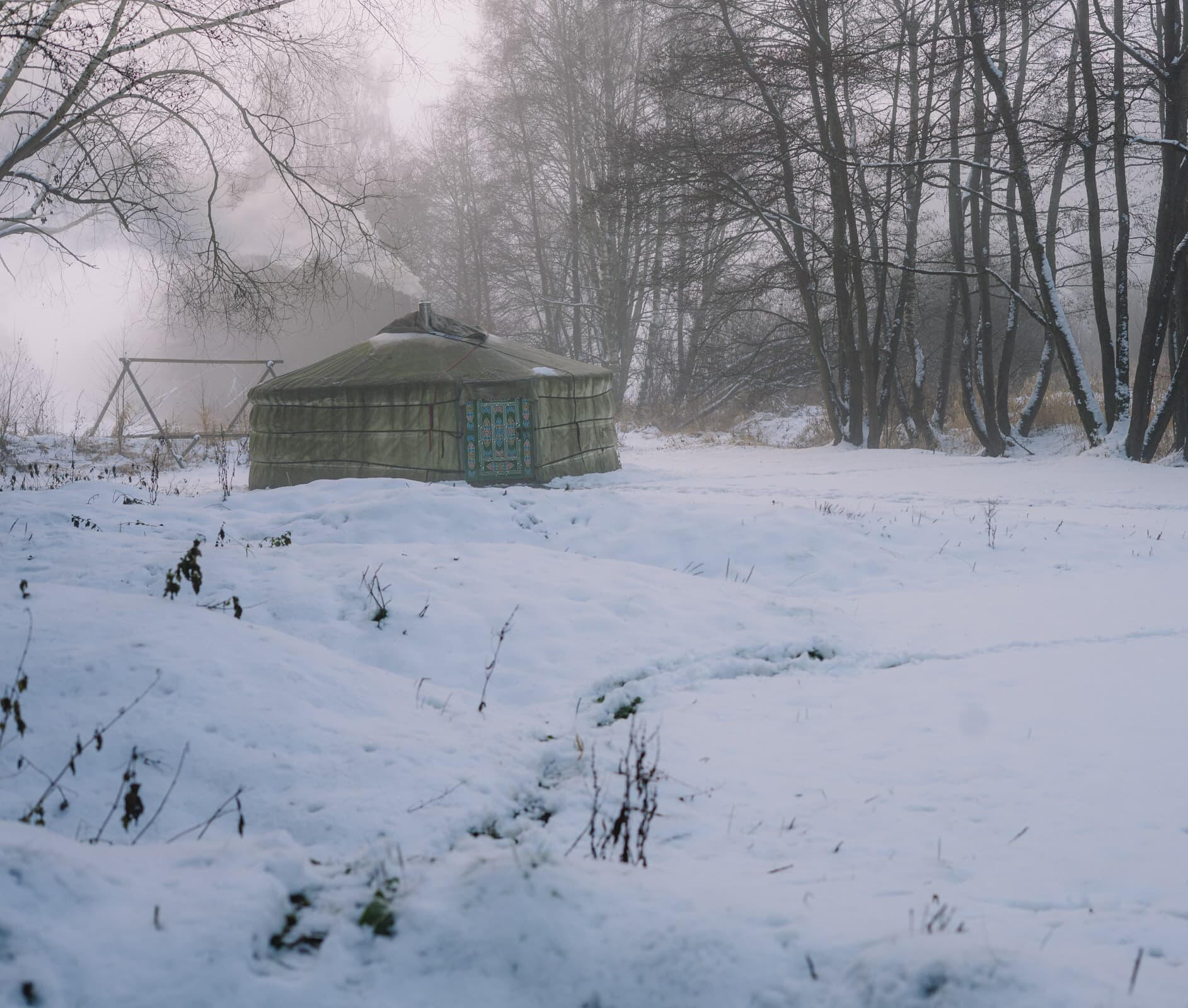 Kdo by čekal, že když pojedeme v listopadu do jurty, bude všude kolem půl metru sněhu?Naštěstí se jurta dala krásně vytopit
